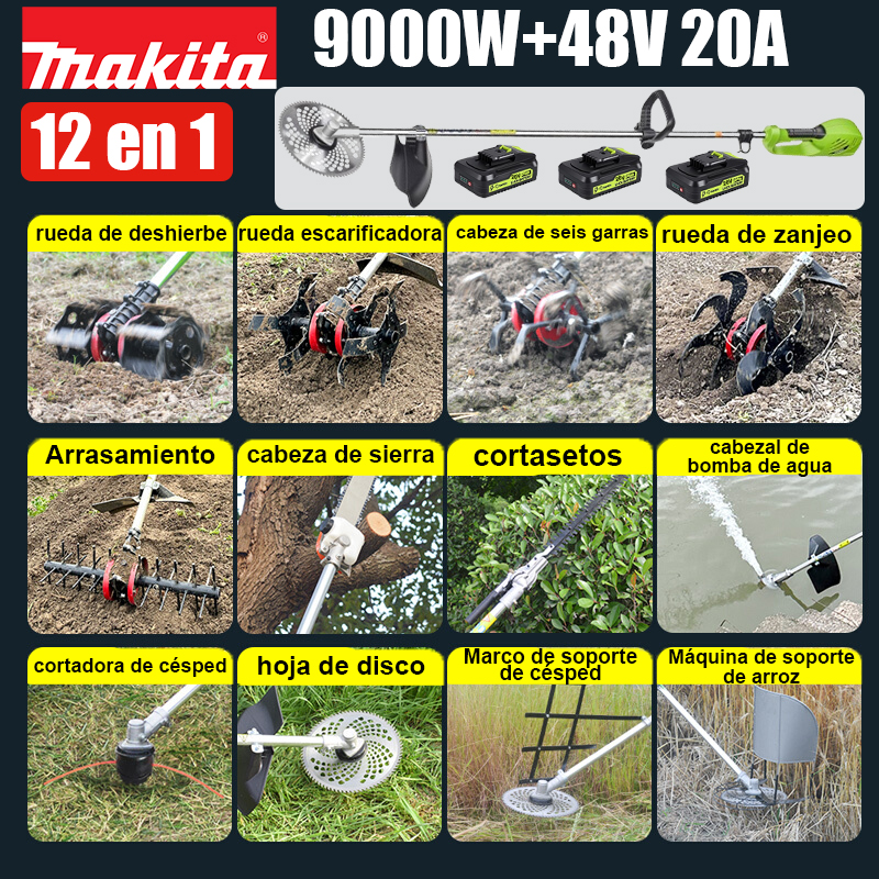 Corta-relva multiusos de 9000 W.